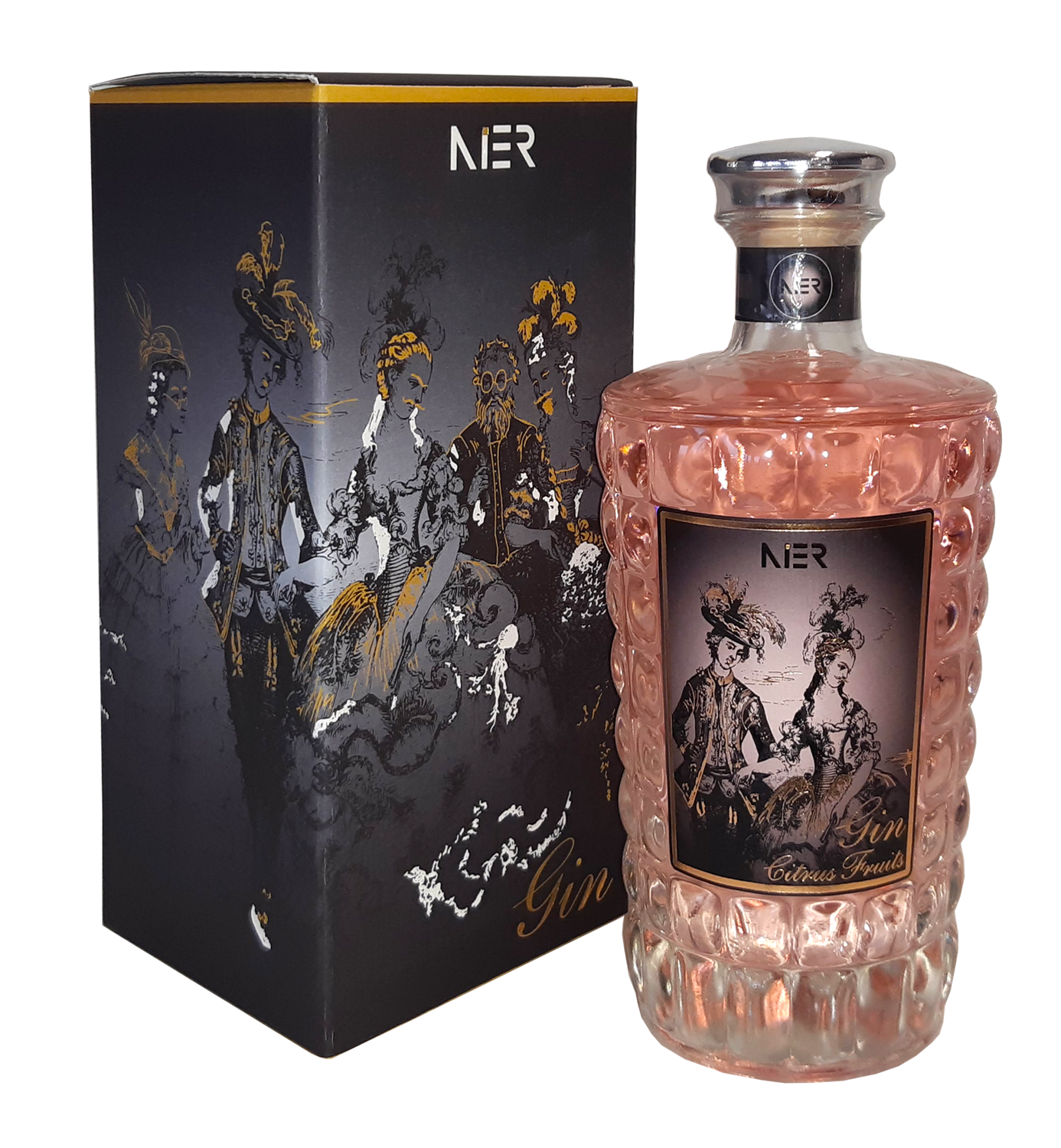 Náš osviežujúci gin je vyrobený zo silnej zmesi horkého pomaranča, citrónu a veľkého množstva bergamotu, s nádychom cukru na zvýraznenie citrusových tónov. Je prezentovaný v úchvatnej ružovej farbe, ktorá oživí váš kokteil. Obsah alkoholu je 46 % v našej vyberanej krištáľovej fľaši. Gin vyrábame v Trenti. Základom je neutrálny biely vínny destilát, borievka a citrusové botanické prísady = Nier Gin, farbu získava z arónie a granátového jablka.